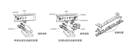 11.涂油輪沿軌道按水平方向滑動,即使是在起重機運行中發(fā)生橫向振動,左右涂油輪亦鉗住軌道,不會發(fā)生離脫。