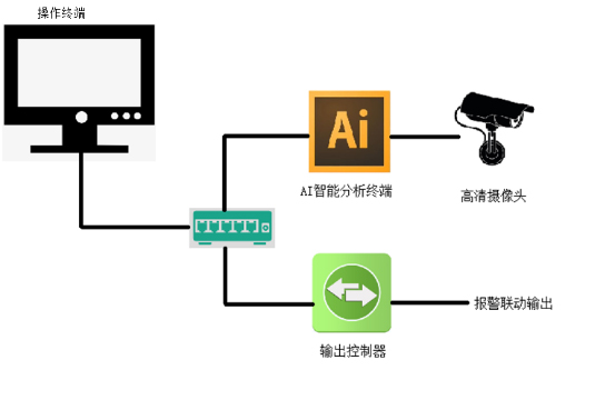 人工智能區(qū)域防護報警系統(tǒng)由前端專用攝像頭,AI智能分析終端,系統(tǒng)聯(lián)動輸出裝置,后端數(shù)據(jù)操作終端組成。