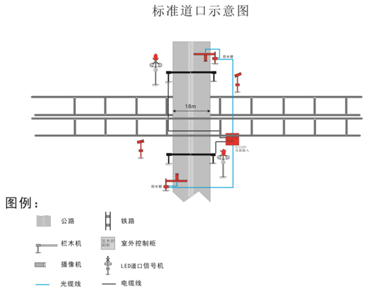 道口室外設(shè)備包括集中控制柜、遮斷信號機(jī),報(bào)警信號機(jī),攝像機(jī)。